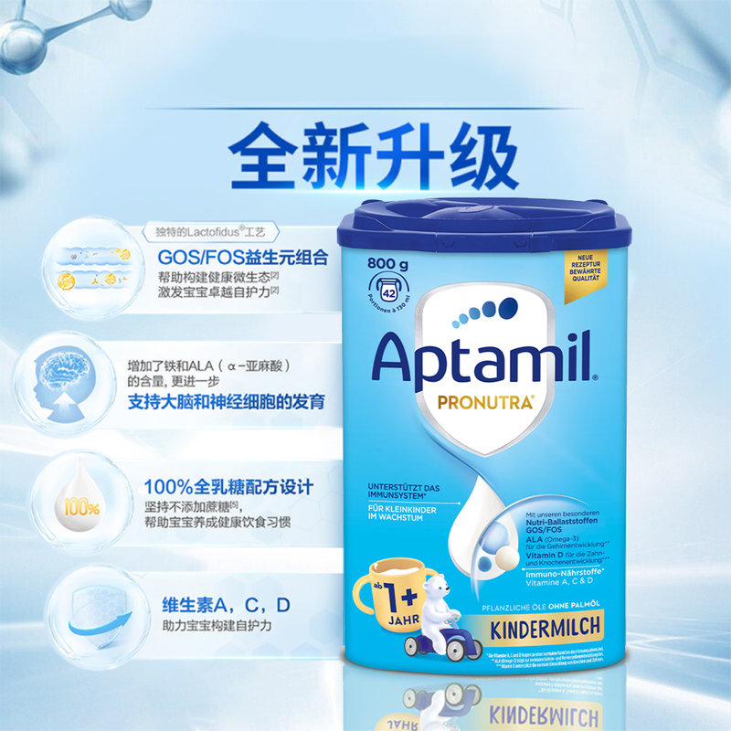 • 商品名称:【保税进口】德国 爱他美(Aptamil)婴儿配方奶粉易乐罐蓝罐 800g 1+段 适合1岁以上