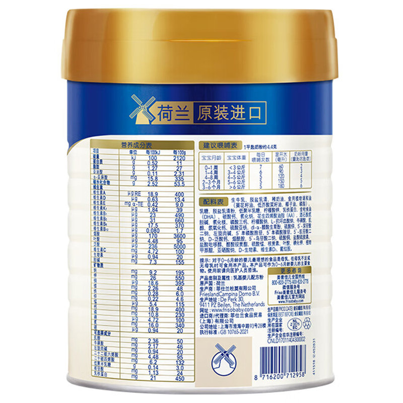 • 商品名称:【完税进口】荷兰 皇家美素佳儿 婴幼儿配方奶粉 1段 800g 新国标 适合0-6个月
