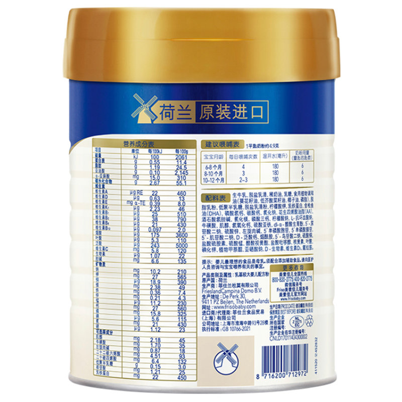 • 商品名称:【完税进口】荷兰 皇家美素佳儿婴幼儿配方奶粉2段 800g 新国标 适合6-12个月