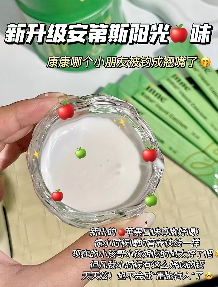 inne因你 竹节钙青少年液体钙儿童生长长高补钙钙镁锌赖氨酸钙30条/罐 新版苹果味
