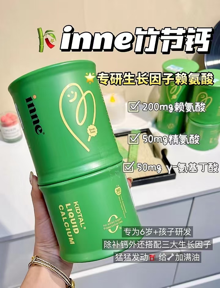 • 商品名称:inne因你 竹节钙青少年液体钙儿童生长长高补钙钙镁锌赖氨酸钙30条/罐 新版苹果味