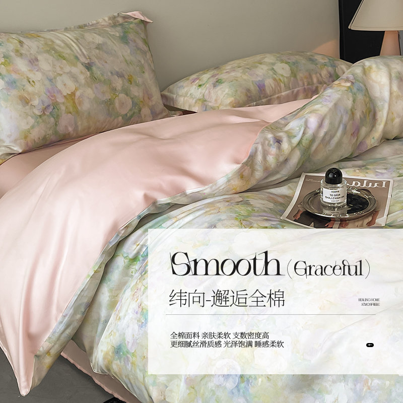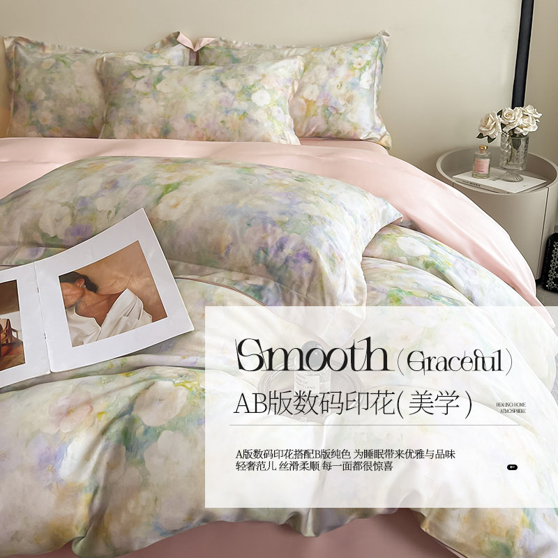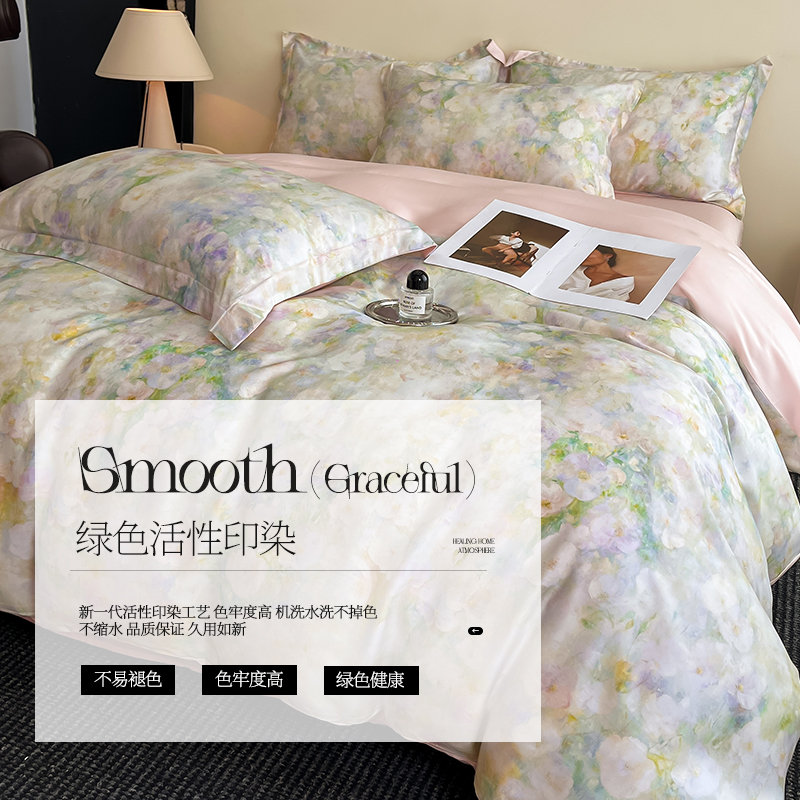 【国内行货】品格家纺 天丝印花床单款四件套 花开半夏(适用于1.5M-1.8M床铺)