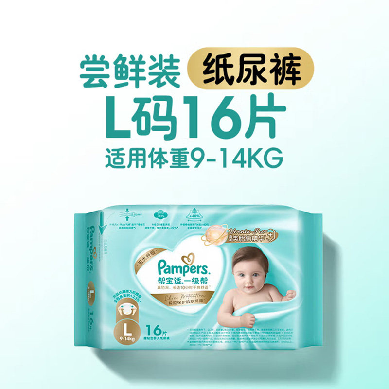 • 商品名称:【国内行货】美国 帮宝适(Pampers)一级帮纸尿裤 L16片(9-14kg)