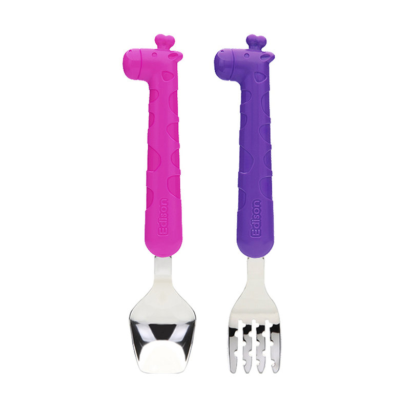 【完税进口】韩国爱迪生(Edison)长颈鹿餐具套装 粉色+紫色(新款) 完税进口