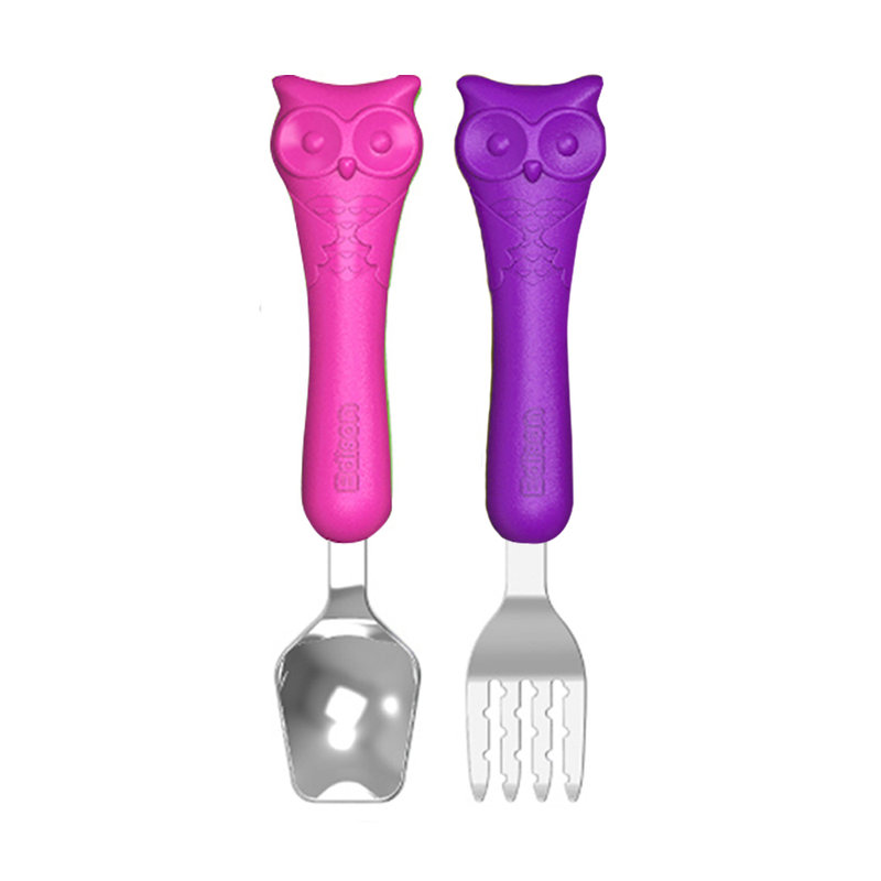 【完税进口】韩国爱迪生(Edison)猫头鹰餐具套装(幼童款)-粉紫 完税进口
