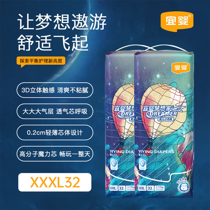 • 商品名称:【国内行货】宜婴 梦想家系列拉拉裤 XXXL32(>=17kg)