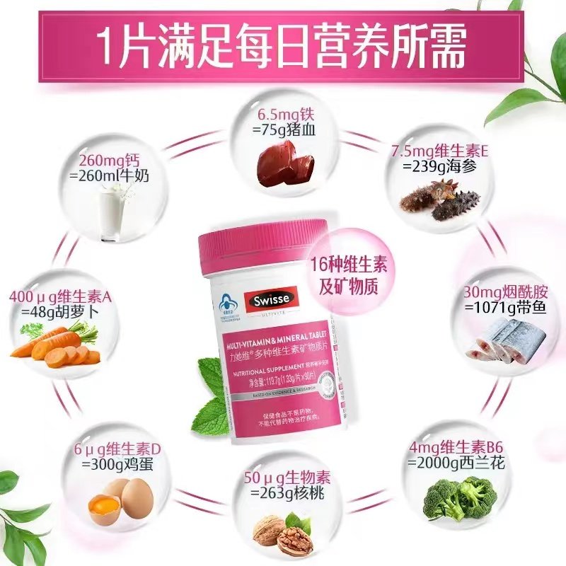 • 商品名称:【国内行货】澳洲 瑞思(Swisse)力她维女士多种维生素矿物质片 90片