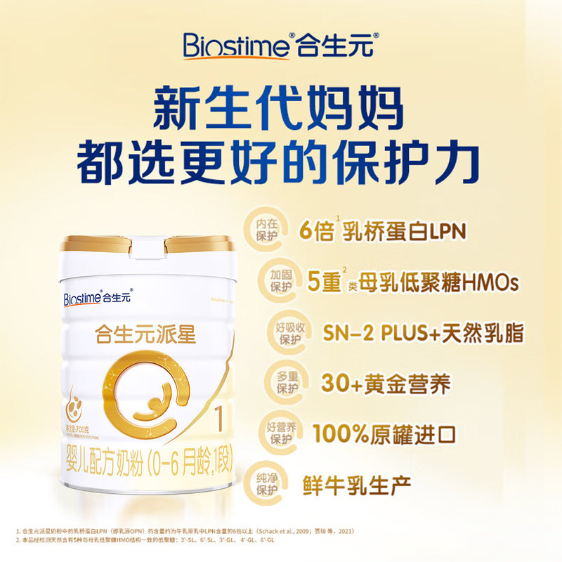 商品名称:【国内行货】合生元(BIOSTIME)派星婴儿配方奶粉1段 700g 适合0-6月*新国标无积分