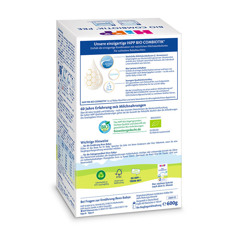 【保税进口】【超值满赠】德国 喜宝(HiPP)益生菌奶粉 Pre段 600g(适合0-6个月)