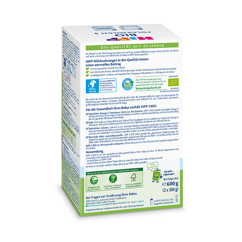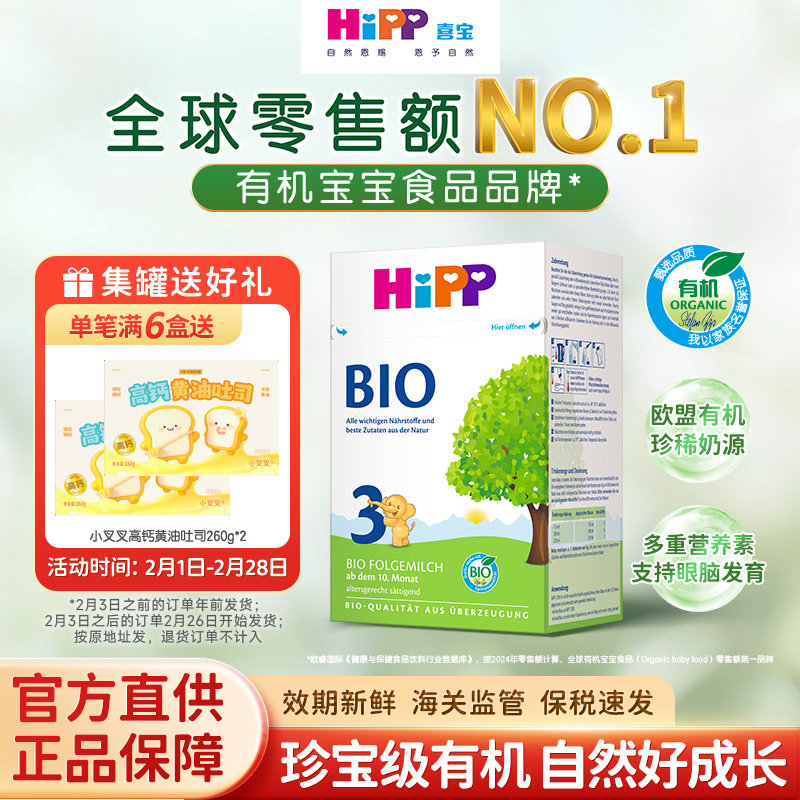 【保税进口】【超值满赠】德国 喜宝(HiPP)有机奶粉3段 600g(适合10-12个月宝宝)