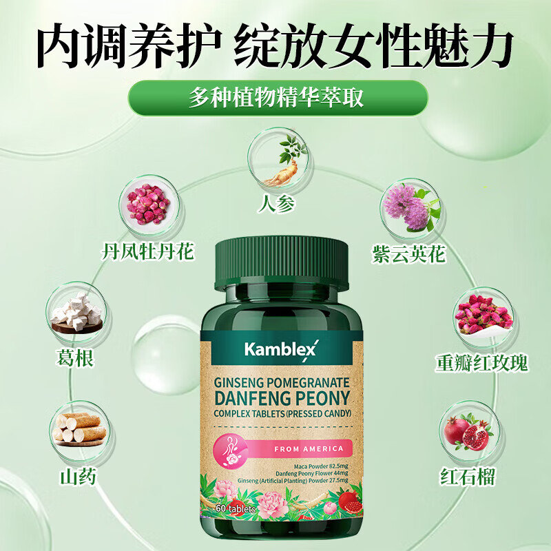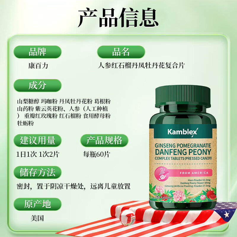 商品名称:【完税进口】美国 康百力 人参红石榴丹凤牡丹花复合片 60粒/瓶
