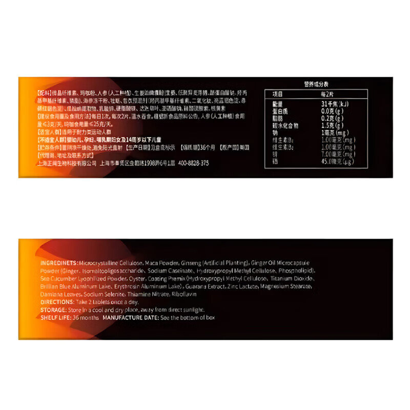 商品名称:【完税进口】美国 康百力 人参玛咖牡蛎片 30粒/盒