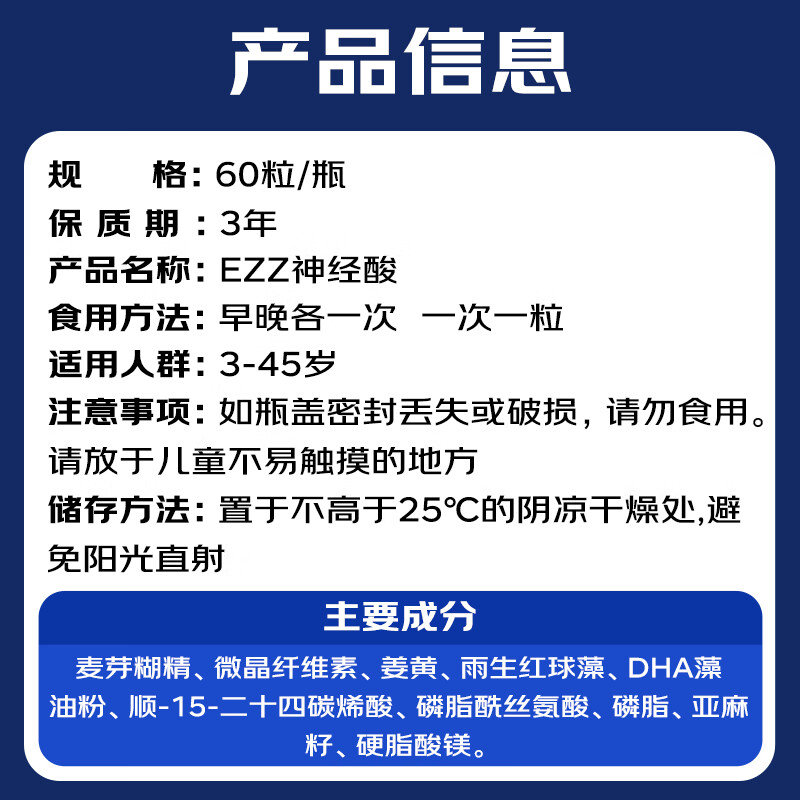 商品名称:【完税进口】澳洲 EZZ 神经酸压片糖果 60粒/瓶