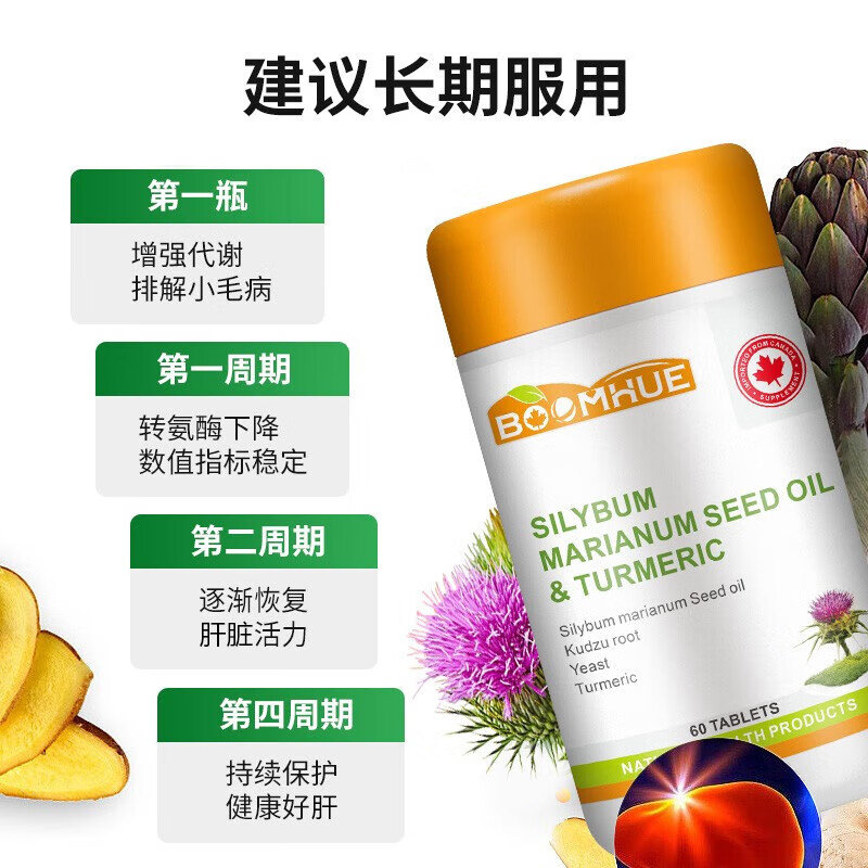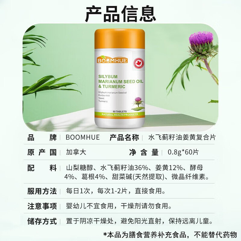 • 商品名称:【完税进口】加拿大 博唤 (BOOMHUE)水飞蓟籽油姜黄复合 60粒/瓶