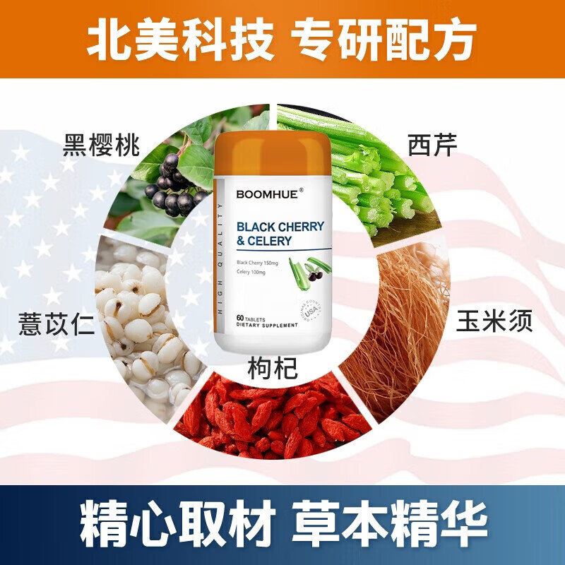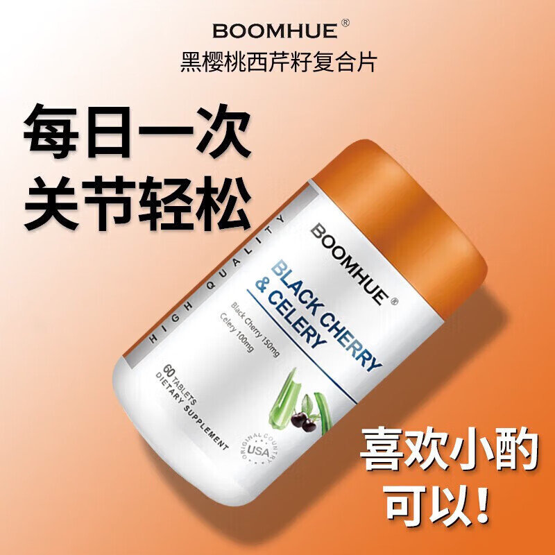【完税进口】加拿大 博唤 (BOOMHUE)黑樱桃西芹复合片 60粒/瓶