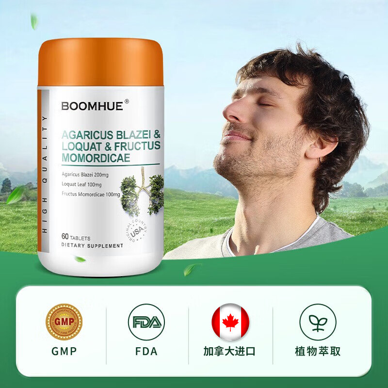 商品名称:【完税进口】加拿大 博唤 (BOOMHUE)姬松茸枇杷罗汉果复合片 60粒/瓶