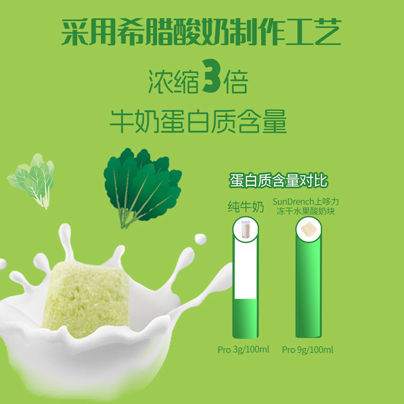 • 商品名称:【完税进口】加拿大 上哆力SunDrench 冻干蔬菜酸奶块(羽衣甘蓝&菠菜)15g