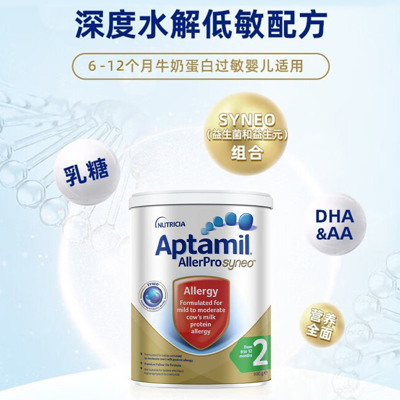 • 商品名称:【保税进口】澳洲 爱他美(Aptamil)AllerPro深度水解抗过敏奶粉 900g 2段 适合6-12个月