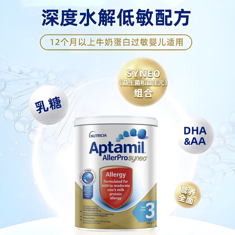 【保税进口】澳洲 爱他美(Aptamil)AllerPro深度水解抗过敏奶粉 900g 3段 适合1岁以上