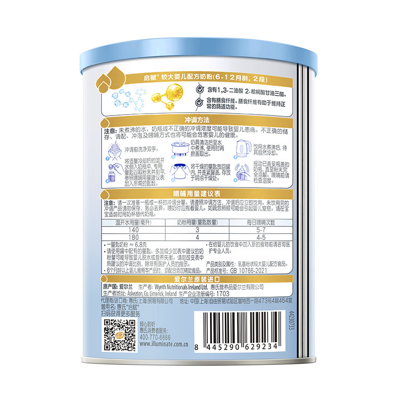 • 商品名称:【完税进口】惠氏(Wyeth)启赋蓝钻较大婴儿配方奶粉 2段 350g 新国标 适合6-12个月*无积分【保证正品】