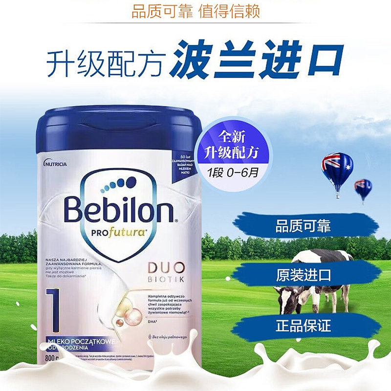 • 商品名称:【保税进口】波兰 牛栏(Bebilon)婴儿配方奶粉1段白金版 800g 适合0-6个月