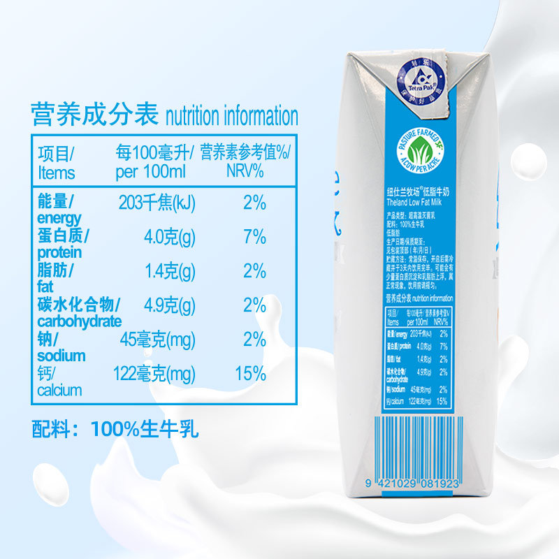 • 商品名称:【完税进口】新西兰 纽仕兰(Theland)4.0g蛋白低脂高钙纯牛奶 250ml*24瓶