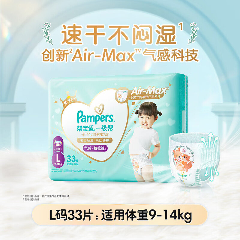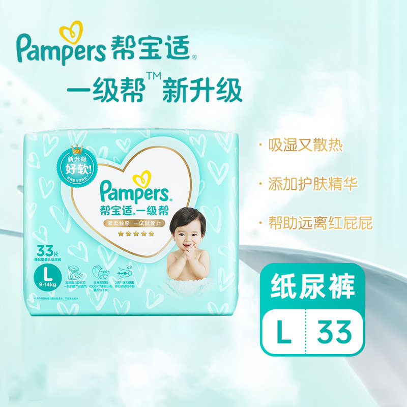 【国内行货】美国 帮宝适(Pampers)一级帮拉拉裤L33(9-14kg)新旧包装随机发