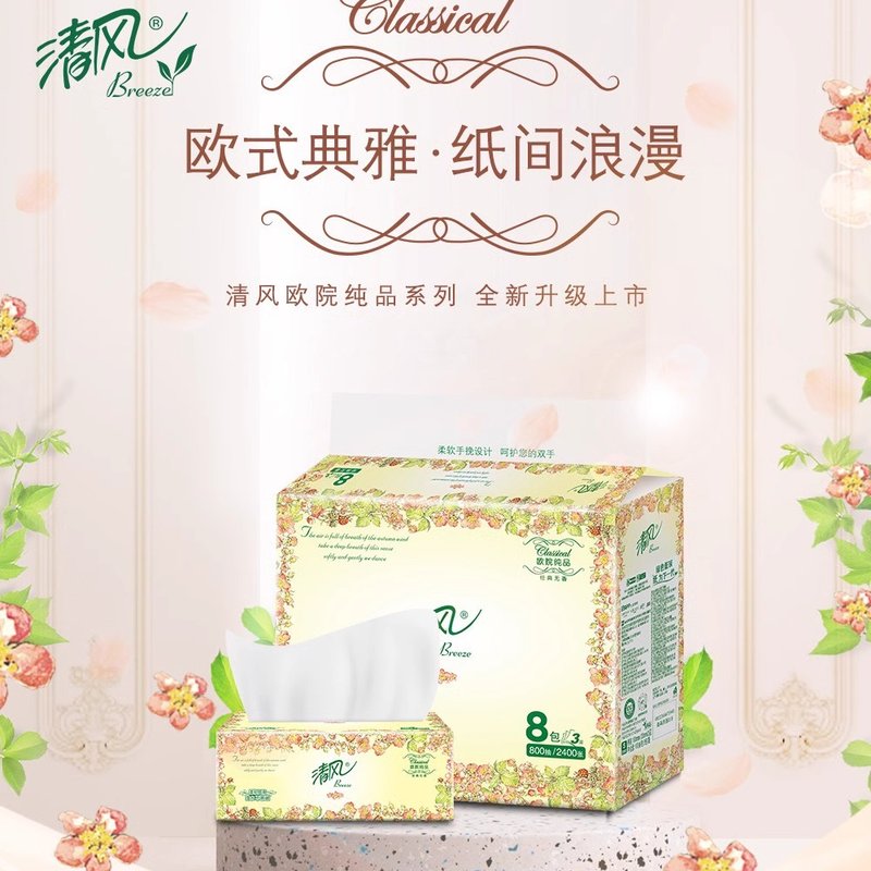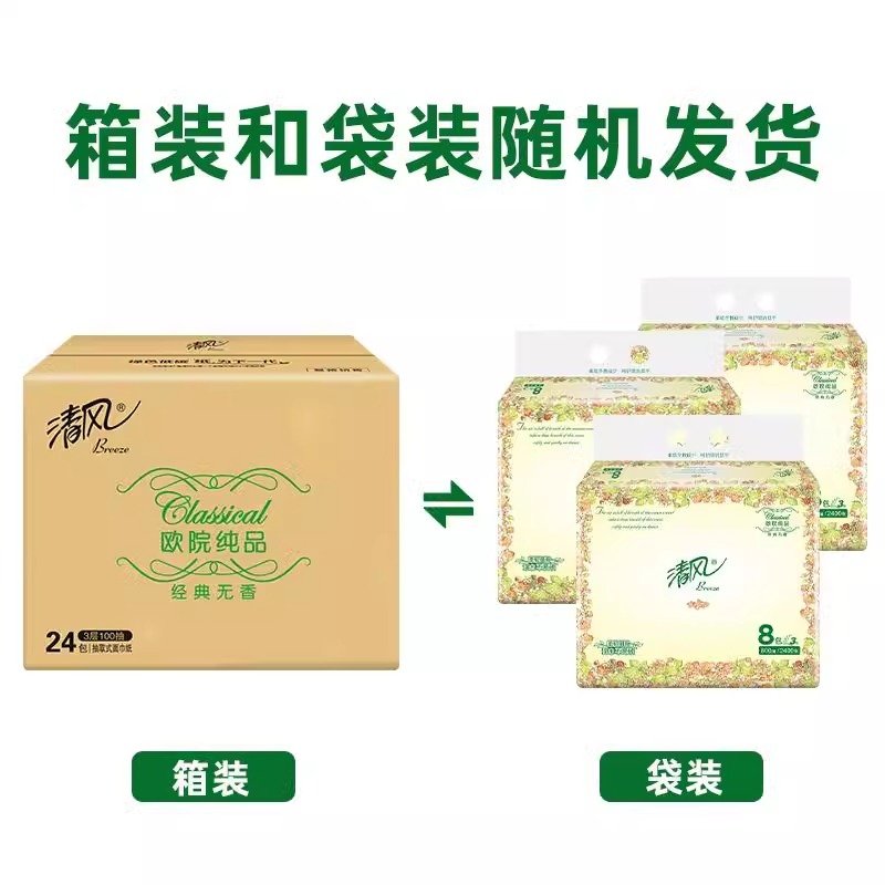 商品名称:【国内行货】清风 抽纸100抽3层加厚欧院系列软抽 8包装