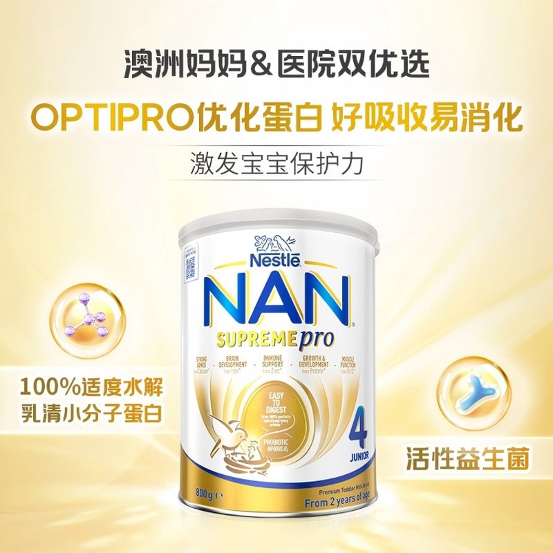 • 商品名称:【保税进口】澳洲 雀巢(Nestle)超级能恩4段婴幼儿配方奶粉 800g 适合2岁+(新旧包装随机发货)