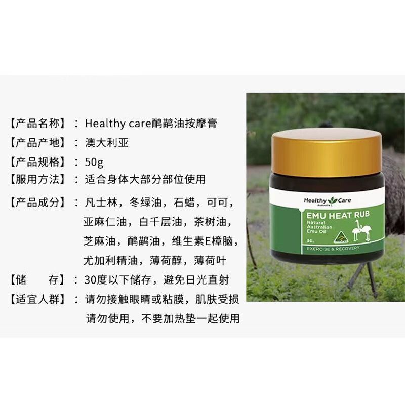 商品名称:【保税进口】澳洲 Healthy Care 鸸鹋油按摩膏 50g/瓶