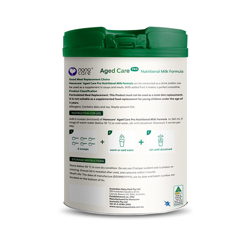 • 商品名称:【保税进口】澳洲 纳诺可儿(Nanocare)Aged Care Pro中老年免疫奶粉(45岁以上)800g