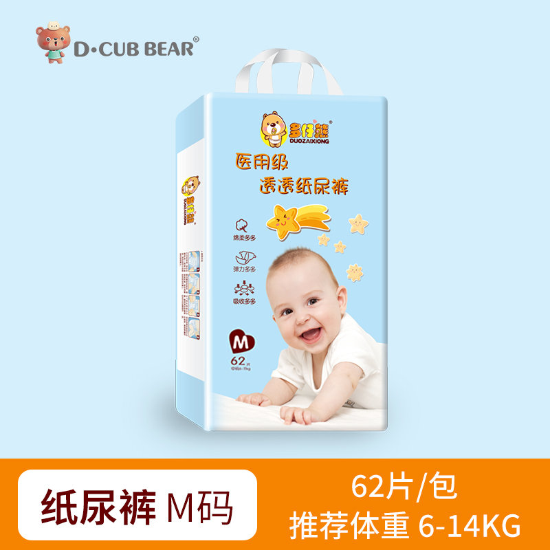 • 商品名称:【国内行货】多仔熊 医用级系列纸尿裤 M码62片(6-14kg) 新旧款随机发