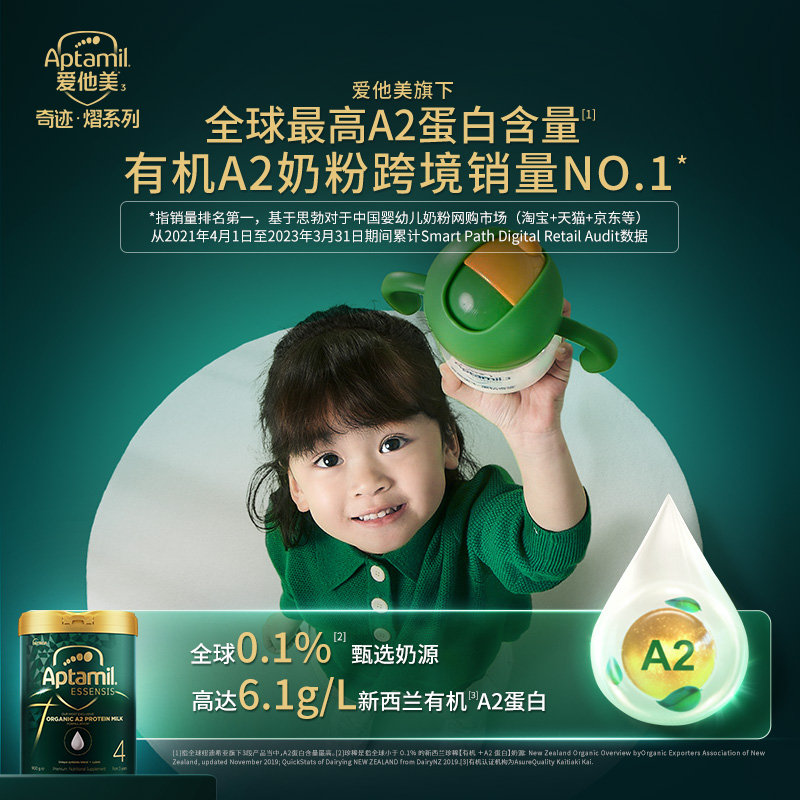 • 商品名称:【保税进口】澳洲 爱他美(Aptamil)奇迹系列 有机A2绿罐婴幼儿配方奶粉 4段 900g 适合3岁以上