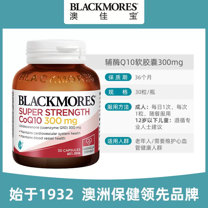 商品名称:【保税进口】澳洲 澳佳宝(Blackmores)高浓缩辅酶Q10胶囊300mg 30粒