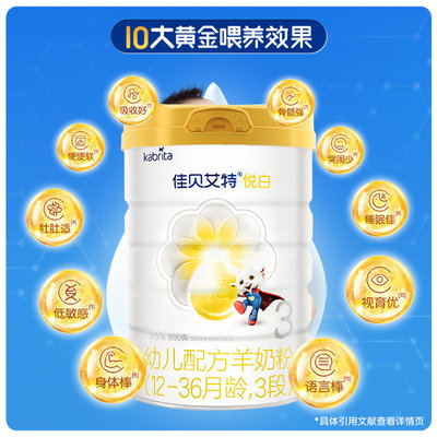 【完税进口】荷兰 佳贝艾特 悦白婴儿配方羊奶粉 3段 800g 适合12-36个 ...