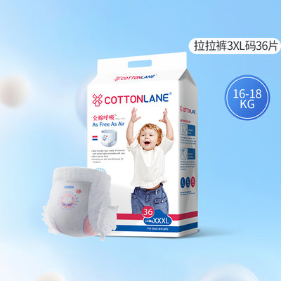 【国内行货】全棉呼吸(COTTONLANE)自由系列拉拉裤XXXL 36片(16-18kg)