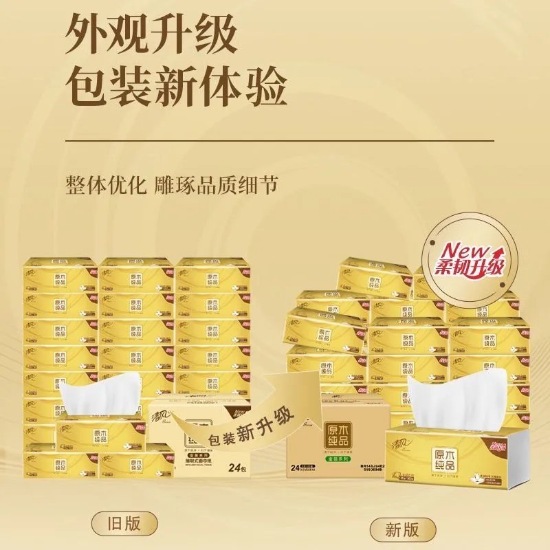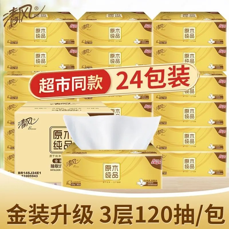 【国内行货】清风(Breeze)原木金装软抽纸 120抽*24包