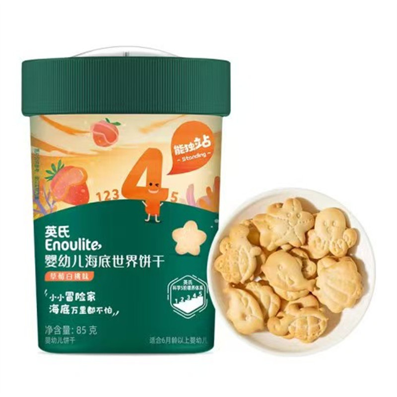 【国内行货】英氏(Enoulite)婴幼儿海底世界造型饼干 草莓白桃味 85g