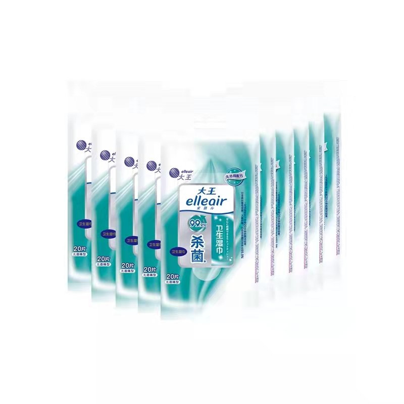 【国内行货】日本 大王(GOO.N)杀菌卫生湿巾无酒精型便携装 20片*5包