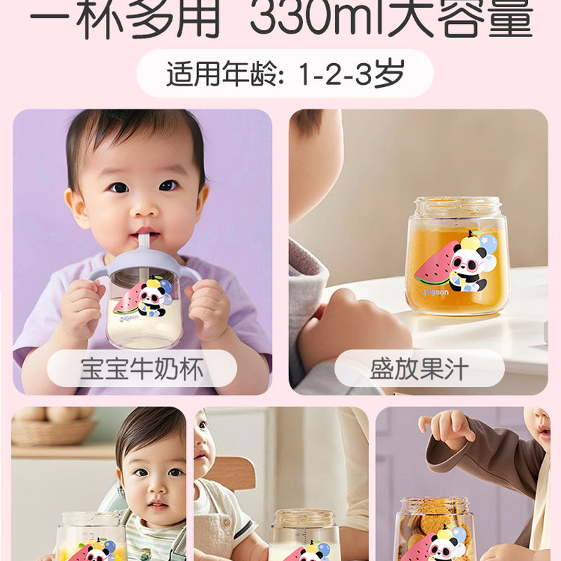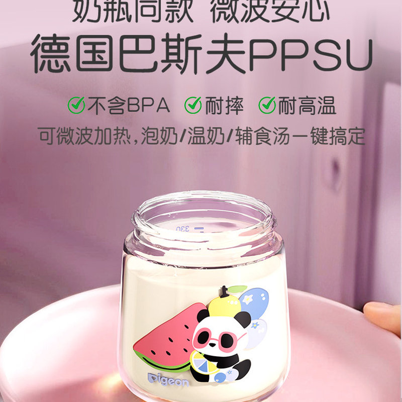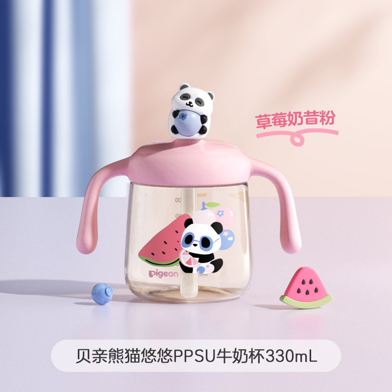 【国内行货】贝亲 熊猫悠悠牛奶杯330ml 草莓奶昔粉 1-3岁