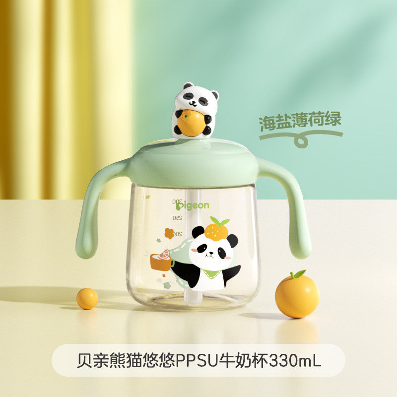 【国内行货】贝亲 熊猫悠悠牛奶杯330ml 海盐薄荷绿 1-3岁